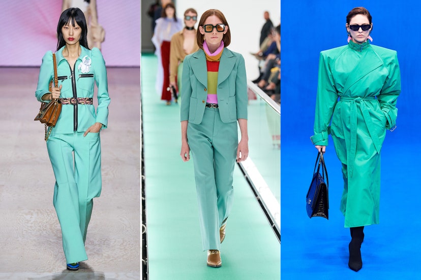 هذا اللون يمزج بين اللون الأزرق والأخضر، لون الأحجار المعدنية، سيكون مناسب للأجواء الصيفية المنعشة، شاهدي معنا هذه الموديلات من تصميم أشهر الماركات العالمية، Louis Vuitton, Gucci, Balenciaga.